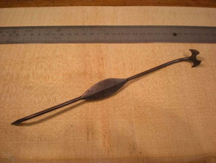 Les principales difficultés de cette pièce sont d’obtenir des courbes régulières, de tailler la pièce en bois de bout (coupe perpendiculaire à la fibre du bois), et bien entendu de trouver un bloc de bois parfaitement sain et de fil pour assurer une bonne résistance. La tête est ensuite affinée au racloir que l’on fabrique soi-même à la forme voulue.