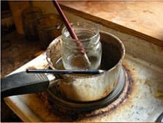 A la finition et à l’usage, on applique de la craie et du savon sur les parties en